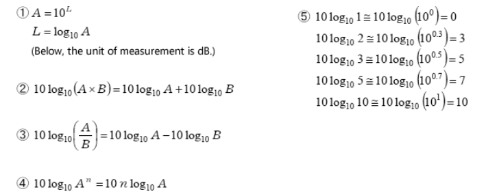 Wie in Abschnitt 4.1 beschrieben, ist Dezi Bel (dB) das Zehnfache des Logarithmus zur Basis 10 des Verhältnisses einer physikalischen Größe (Leistung) zum Bezugsschalldruck. Das bedeutet, dass es wichtig ist, die logarithmische Rechnung zu verstehen. Hier sind einige der grundlegenden Eigenschaften des Logarithmus.