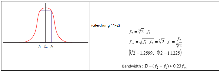 11.3 Oktaven Filterbandbreite und Mittenfrequenz